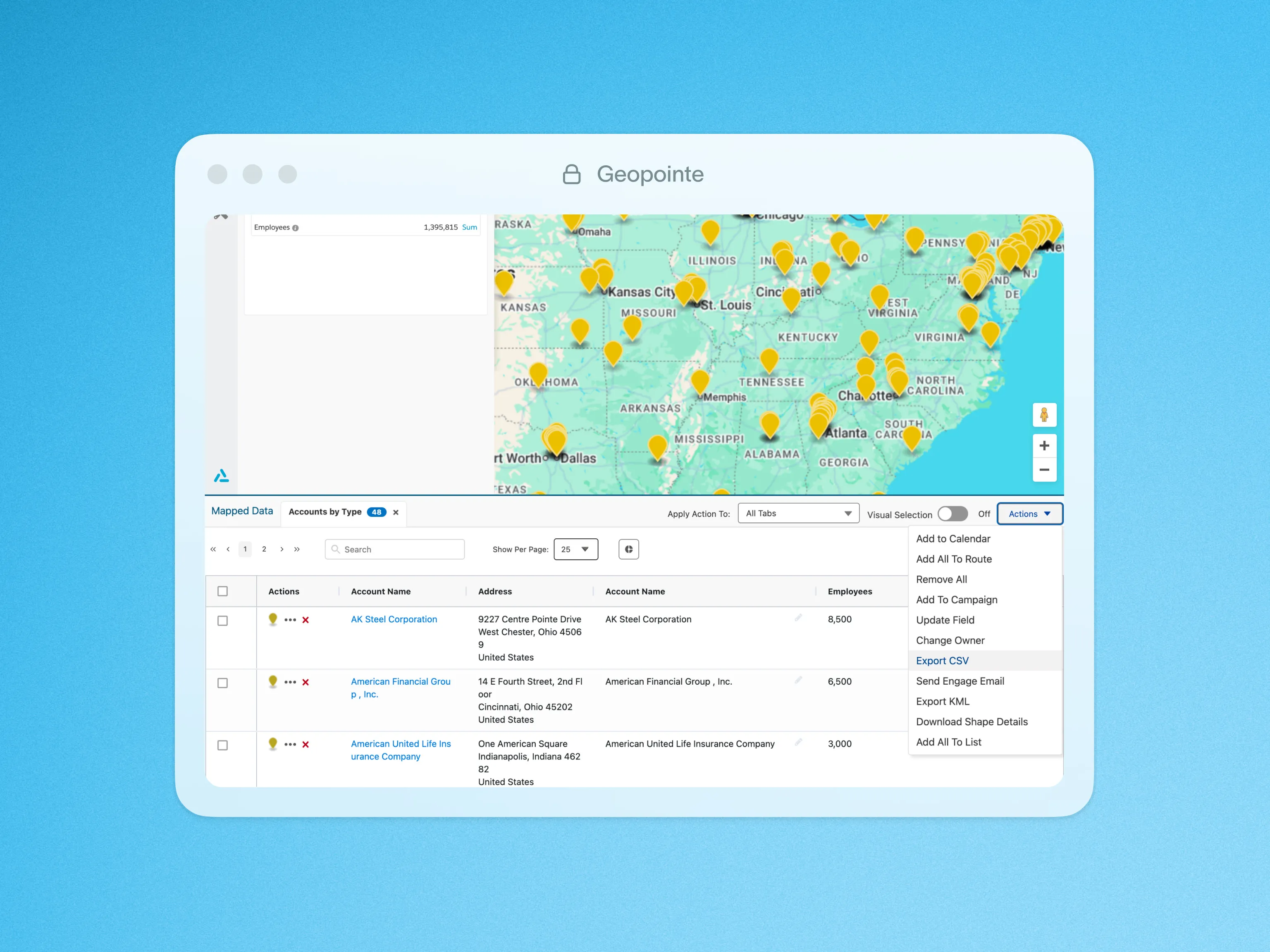 Sometimes you need more than a map to see a picture of your data. Geopointe’s interactive charts enable you to go beyond mapping by offering advanced data visualization directly within the Geopointe interface, eliminating the need for Excel exports.