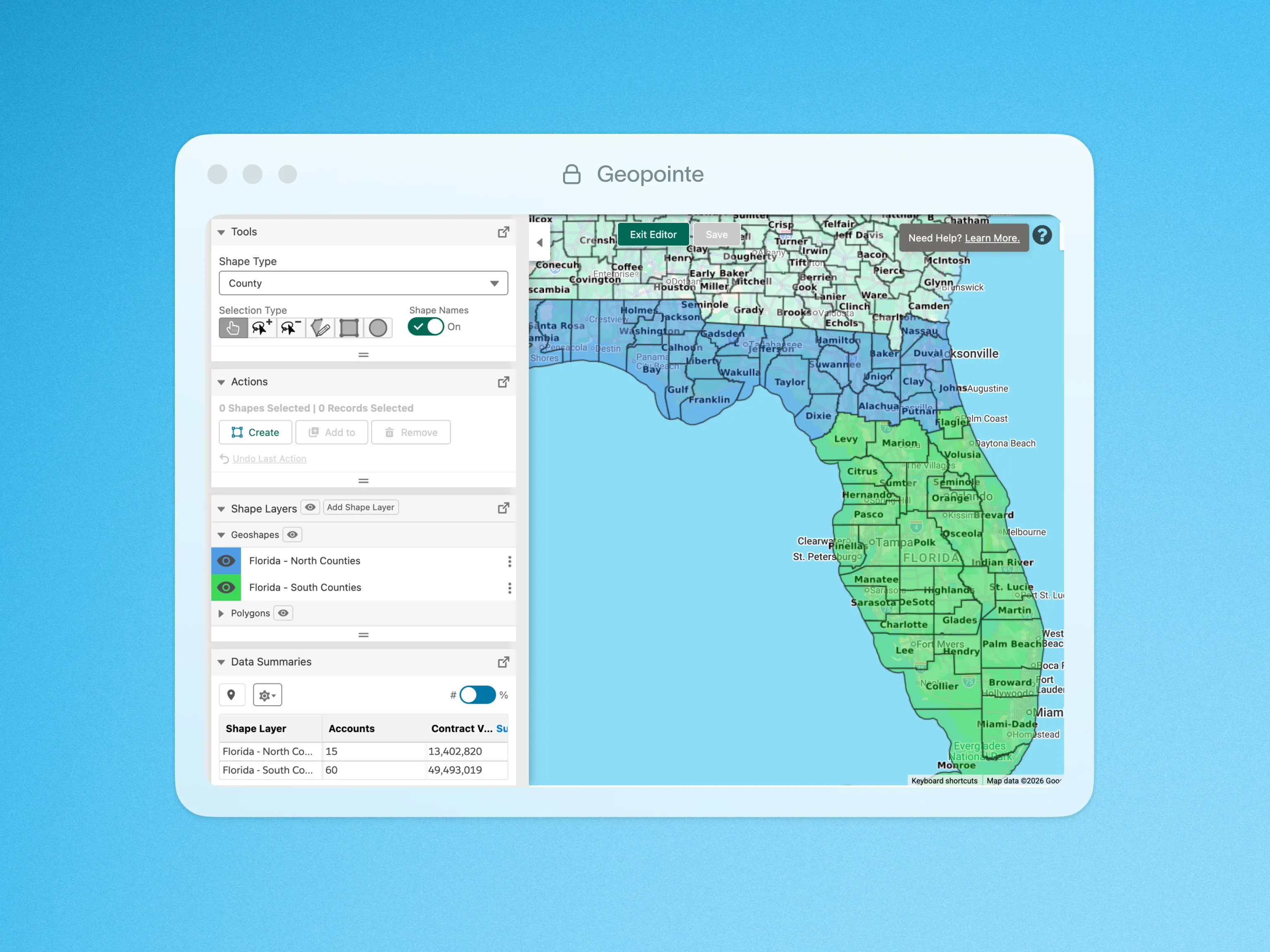 Visually build territories using the Geopointe Shape Library, then use geographic and data insight to fine-tune and manage them.