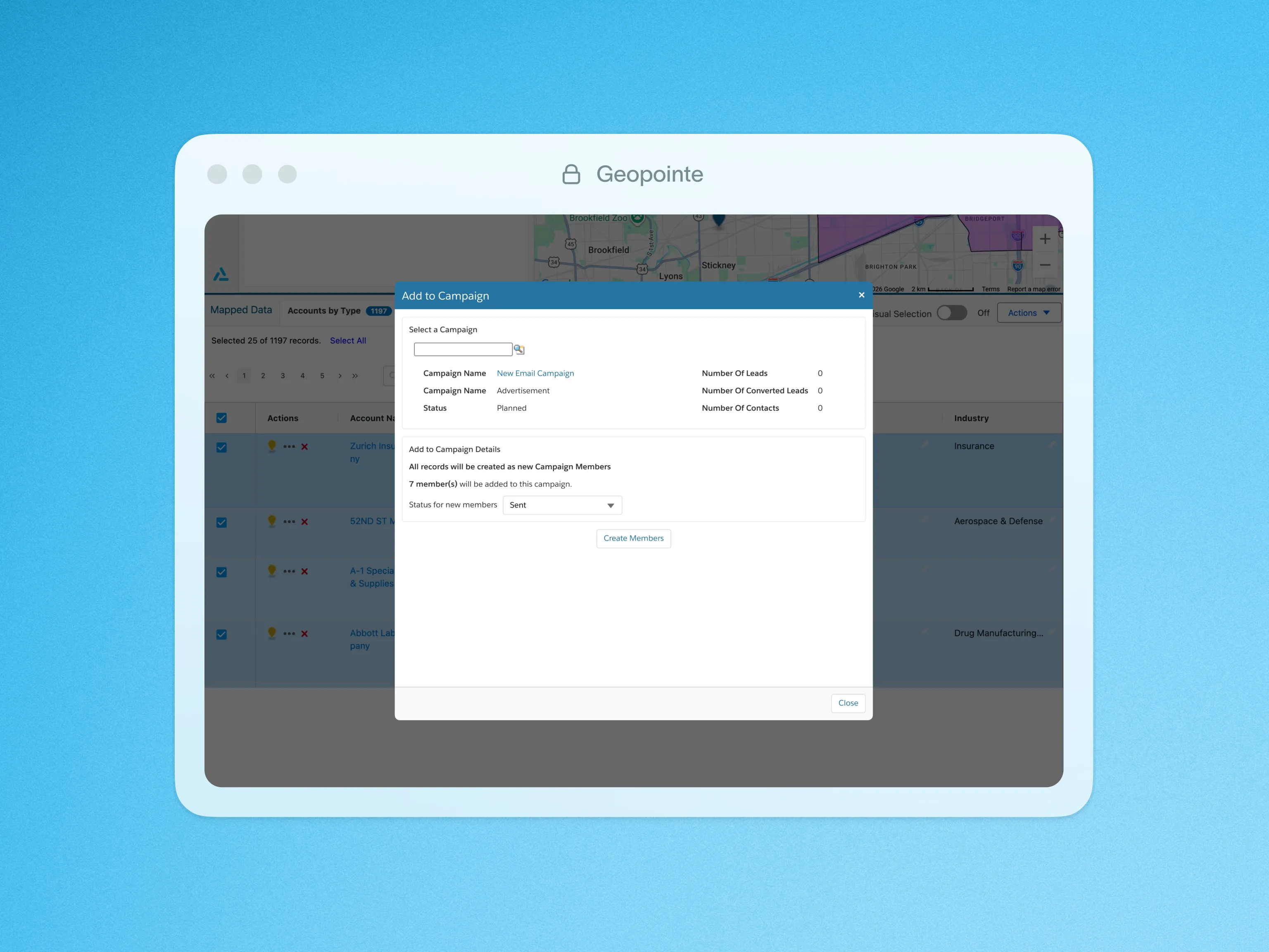 Territories can be modeled around segments and geographies, then activated in the field so ABM lists translate into consistent coverage and coordinated outreach.